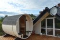 Przedmiotem oferty jest Sauna ogrodowa o długości 2,44 m, średnicy 2,2 m i wysokości 2,4 m.